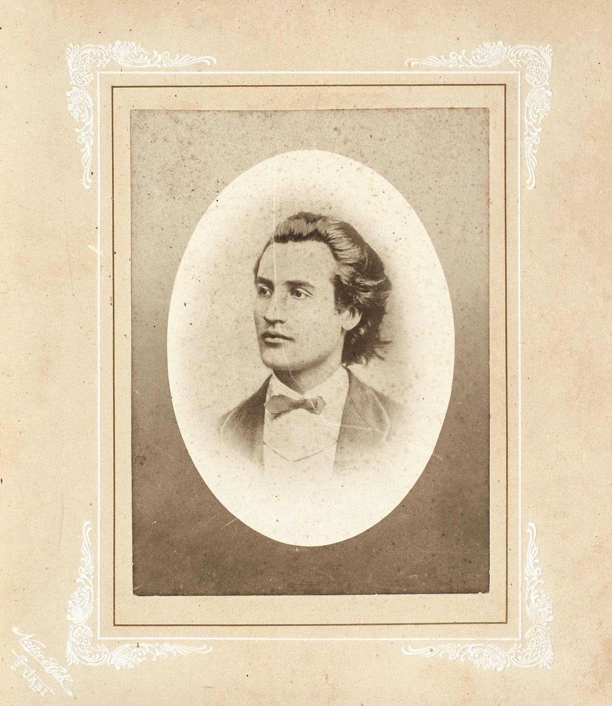 Mihai Eminescu, reprezentant universal al culturii românești, a fost surprins, de-a lungul vieții, în doar 4 fotografii cunoscute și certificate. Prima dintre ele a fost realizată în tinerețea artistului, la vârsta de 19 ani, la Praga, în 1869, în atelierul fotografului Jan Tomas, în drumul său spre Viena, la studii. Este cea mai cunoscută fotografie cu marele poet, recunoscută chiar și de către copii. După această fotografie au fost produse în țară alte două variante de către fotografii din Iaşi Bernhard Brand şi Nestor Heck. Imaginea tânărului Mihai Eminescu a fost asociată în repetate rânduri cu operele sale, fiind ilustrată în manualele școlare, afișe de epocă sau cărți poștale de epocă.