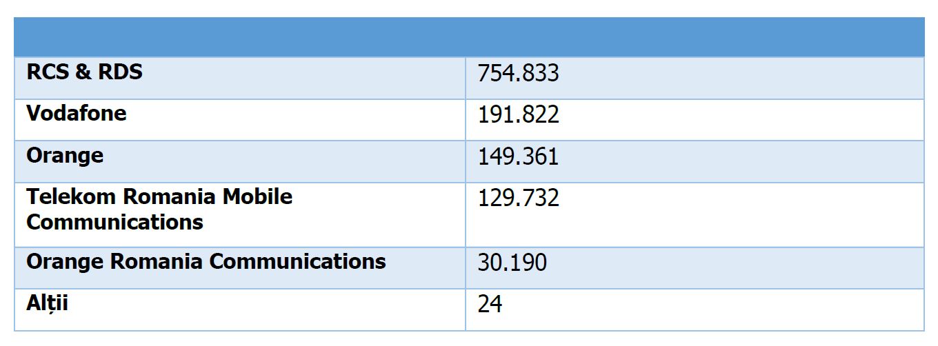 Telekom Romania Mobile Communications a primit 129.732 de numere, iar Orange Romania Communications 30.190.