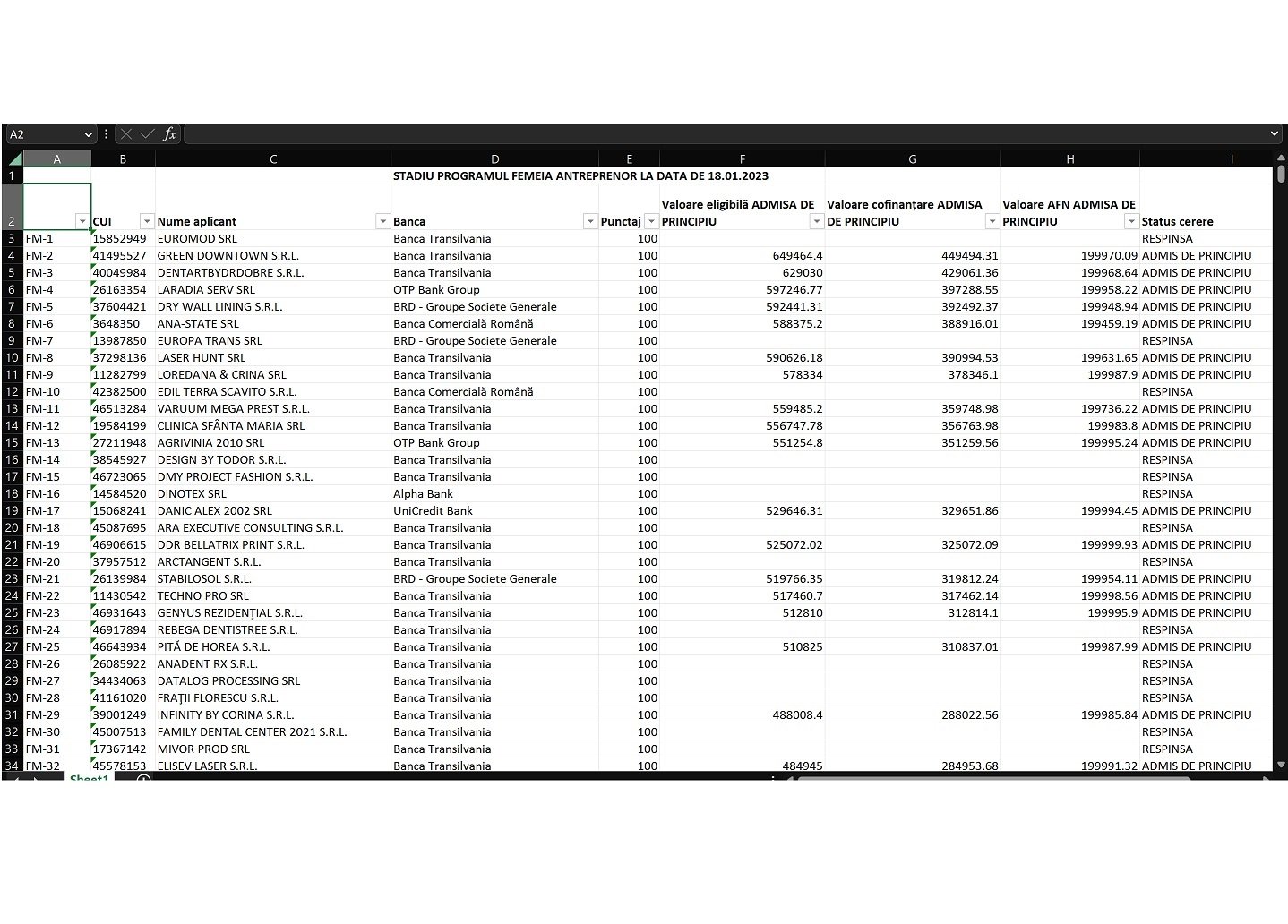 Rezultate parțiale la programul Femeia Antreprenor: S-a publicat lista cu firmele admise de principiu și cele respinse, pentru granturile de max. 200.000 lei de la stat