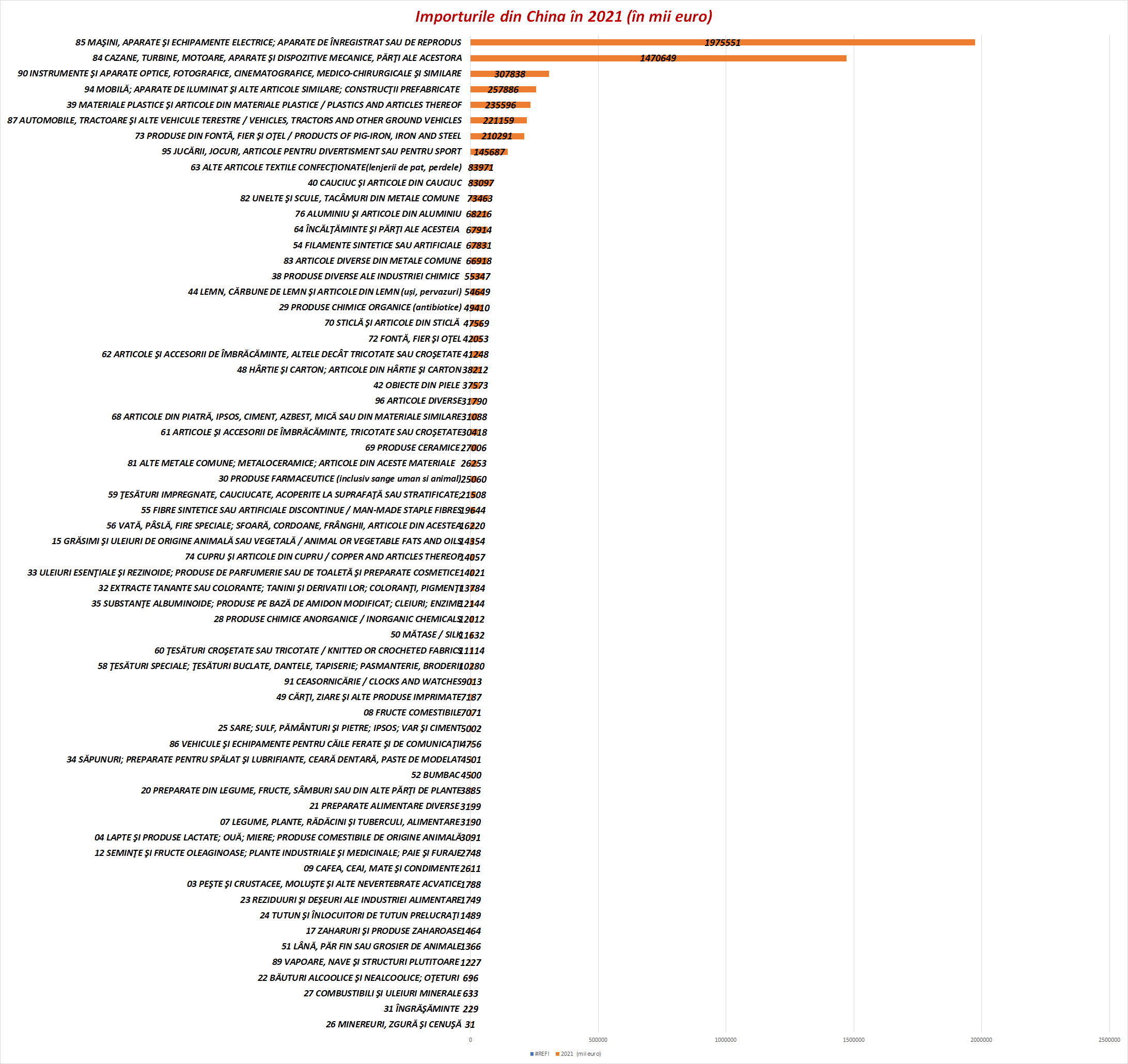Mai jos, categoriile de mărfuri pe care le importăm din China, potrivit Nomenclatorului Combinat. Dacă intrați în detalii, o să vedeți că importurile acoperă aproape toată gama de produse.