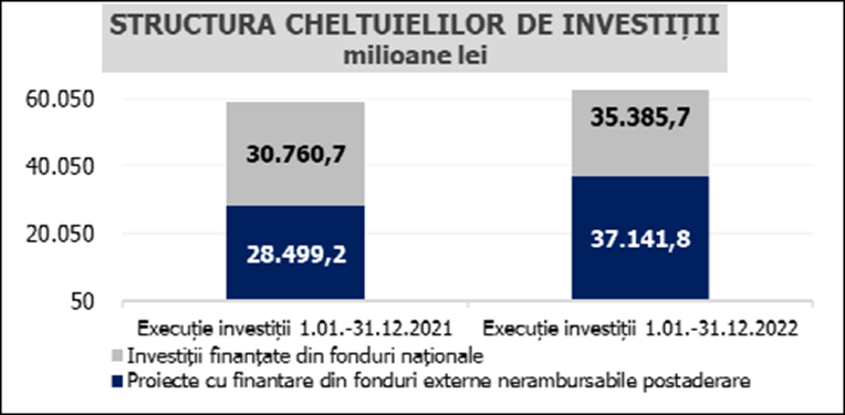 Ei bine, dacă salariații au avut bani mai puțini în 2022 decât în 2021, industria și-a redus volumul producției, comerțul a scăzut practic (a crescut de patru ori mai încet decât inflația), deci a scăzut consumul, agricultura a scăzut și ea, atunci unde se vede acea impresionantă creștere economică? Păi în primul rând la stat, căci guvernul a beneficiat de venituri cu o cincime mai mari decât în anul 2021 (un plus de 21,2%, cu mai bine de cinci puncte procentuale peste rata inflației). Asta în timp ce cheltuielile guvernului au crescut cu mult mai puțin, cu doar 17,7%, adică doar cu un punct peste rata inflației. De altfel, statul este și marele beneficiar al scumpirilor, el încasând o cincime din veniturile sale din TVA, cel mai mare impozit pe„ consum”, singurul impozit care crește proporțional cu creșterea prețurilor. (https://mfinante.gov.ro/documents/35673/5990631/nota_bgc31dec2022.pdf ). Cea mai consistentă contribuție la creșterea economică de anul trecut vine tot din partea statului, care și-a crescut investițiile publice cu peste 14 miliarde de lei, de la 58 de miliarde de lei în 2021, la 72 miliarde de leiîn 2022. Investițiile statului au crescut, așadar cu 28%, adică cu 12 puncte procentuale peste inflație.