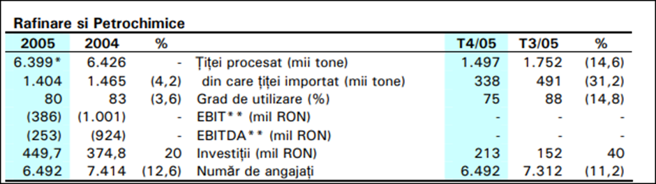 Tot atunci, în 2004, s-au procesat în cele două rafinării 6,426 milioane de tone de țiței.