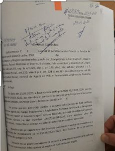Pentru doamna Anghelache Ramona, membră în comisie, secretară a Penitenciarului, precizam că pentru a induce în eroare organele de cercetare și a da aparența legalității unor acte întocmite, a înregistrat în fals un raport al doamnei Cristea Nicoleta, în registru de numere al unității, în locul altui document, fapt verificat în oglinda electronică a registrului.