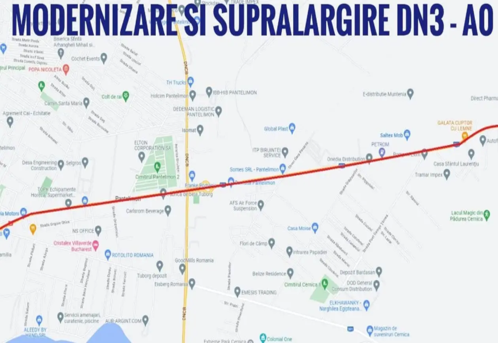 Pentru zona București – Pantelimon, Ilfov. Luni, 20 februarie 2023, au fost trimise spre validare către ANAP (Agenția Națională pentru Achiziții Publice) documentele de atribuire necesare pentru elaborarea Studiului de Fezabilitate pentru lărgirea la 4 benzi a DN3 între DJ301 (orașul Pantelimon) și intersecția cu DJ301B (Brănești – Găneasa).