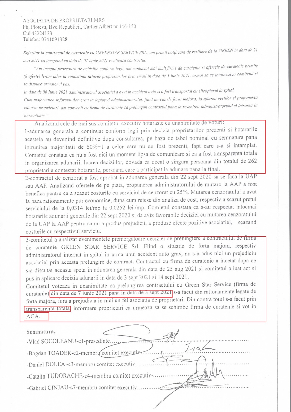 Exemplul 17: Adunarea generala a proprietarilor MRS SMART 25.08.2021.