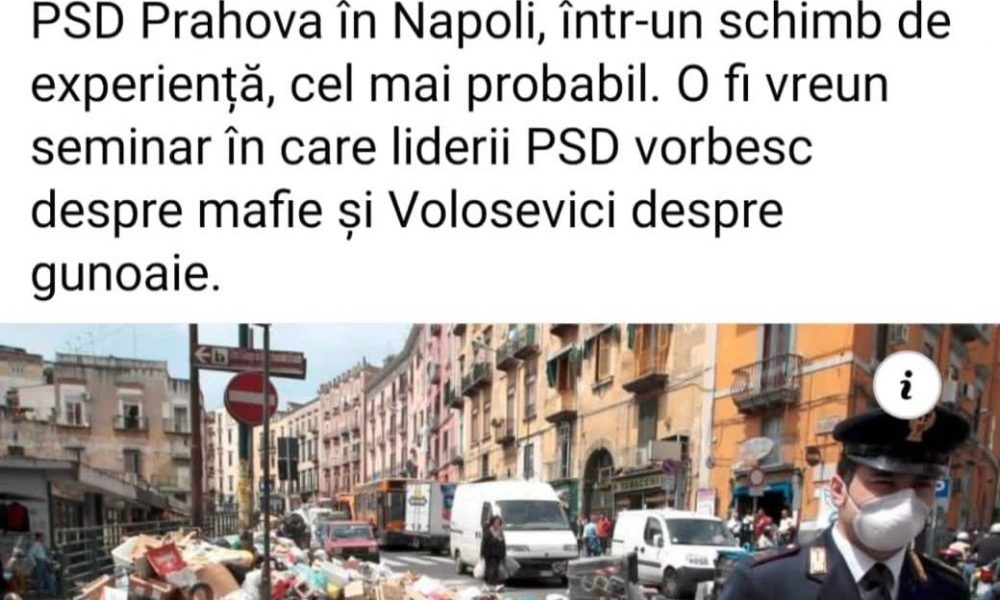 „Primarul Volosevici s-a intalnit cu liderii PSD Prahova in Napoli, intr-un schimb de experienta, cel mai probabil. O fi vreun seminar in care liderii PSD vorbesc despre mafie si Volosevici despre gunoaie”, a fost mesajul postat de deputat. (Redactia Incisiv de Prahova).