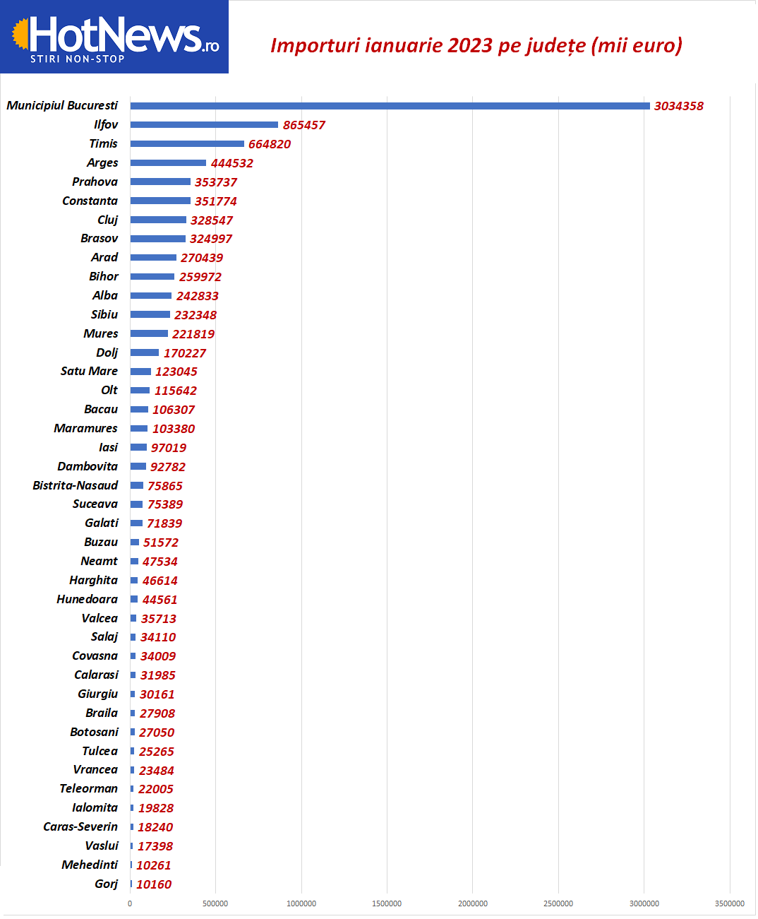Mai jos, clasamentul pe județe privind importurile (baza de calcul- ianuarie 2023)