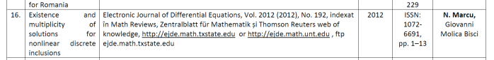 Primul autor Nicu Marcu, savant de renume mondial în opinia Politehnicii (în Laudatio din iulie 2019 se regăsește un pasaj prin care senatul afirmă fără nicio probă că alte 12 pagini publicate de Marcu în urmă cu câteva săptămâni ,,reprezintă deja o referință teoretică notabilă” (?!?)) , pare să îi facă un hatâr unei somități a matematicii, la nivel global: profesorului Giovani Molica Bisci, care apare ca și co-autor într-un articol ISI.