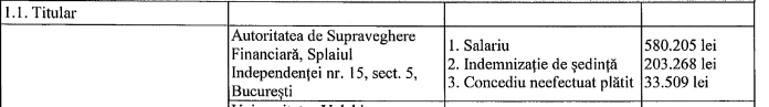 Indemnizația de ședință reprezintă la nivel anual un plus față de ,,salariul net” anual al Președintelui ASF de aproximativ 35%, așa cum rezultă din declarația de avere a predecesorului lui Nicu Marcu.
