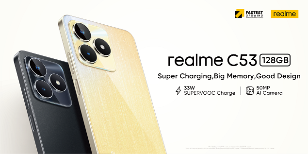 București, România – 5 iulie 2023- realme, compania producătoare de telefoane și produse AIoT cu cea mai rapidă creștere din lume, a anunțat lansarea modelului C53. Telefonul este primul din segment cu încărcare la 33W, poate avea până la 12GB memorie RAM virtuală și 128GB de stocare. Într-o gamă de preț accesibilă, realme C53 oferă și o cameră foto de 50MP, dar și o carcasă subțire de doar 7.49mm.