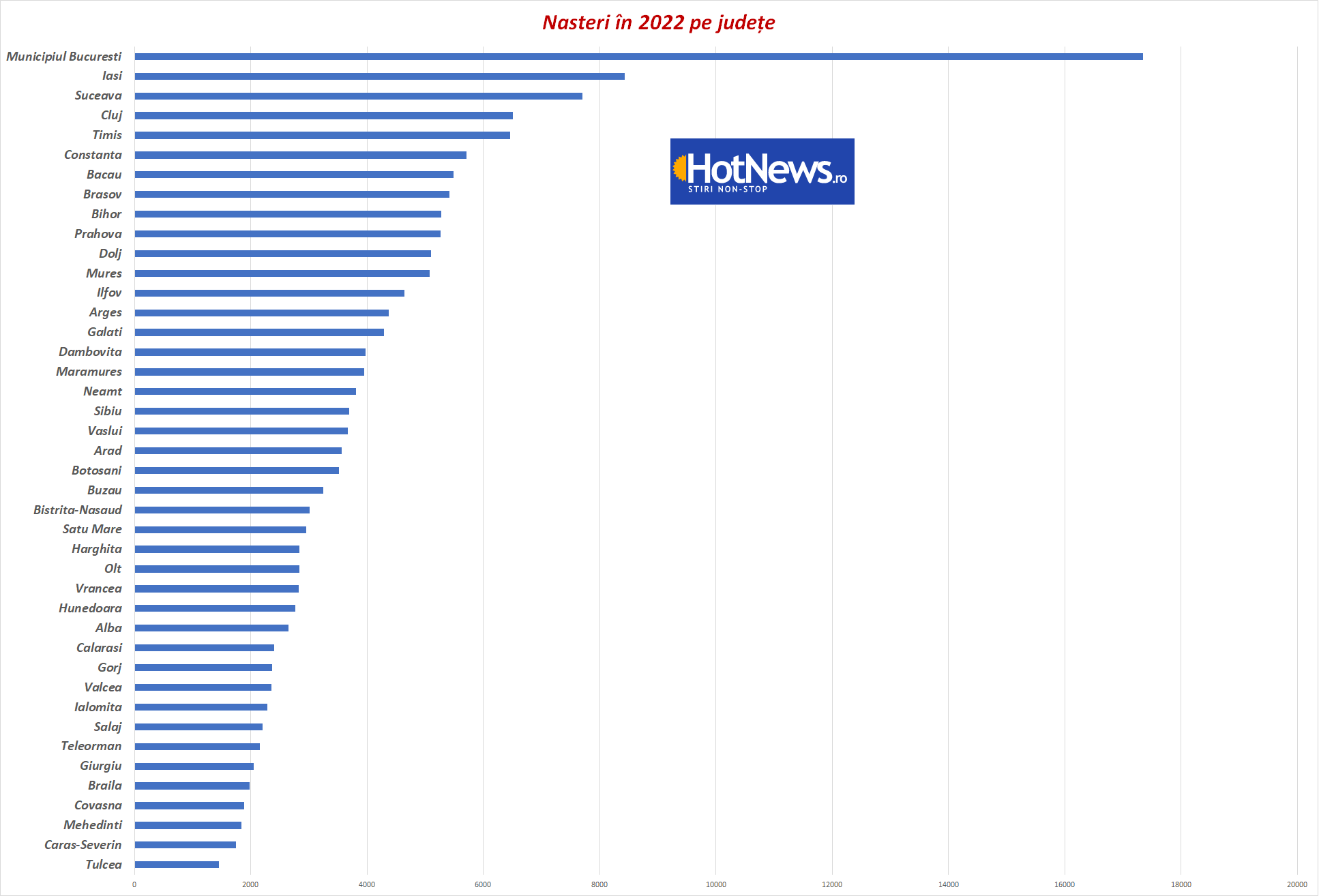Iar mai jos numărul nașterilor pe județe, în cifre absolute: