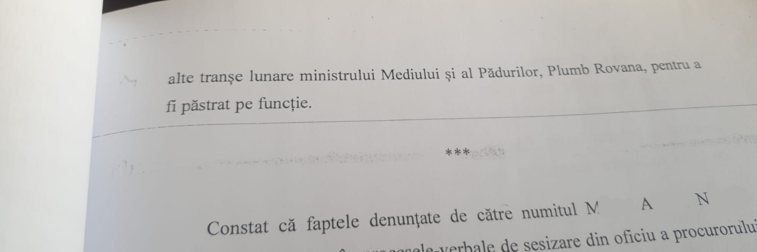 Din câte îmi amintesc, din discuţiile purtate cu numitul Vorovenci Aurel, colegul meu în cadrul Comisariatului de Regim Silvic şi Cinegetic Ploieşti, am aflat că şeful meu Sever Stanciu, inspector şef în cadrul acestei instituţii ar fi achitat direct sau prin intermediari, Rovanei Plumb, ministrul Mediului şi al Pădurilor la acea dată, pentru a rămâne în funcţie, suma de 200000 euro, dar şi o diferenţă în rate lunare, acesteia.