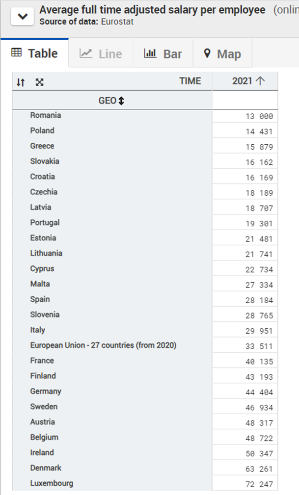 Pentru a continua analiza și mai adânc, putem să vorbim și despre salarii și să constatăm faptul, deloc așteptat, că salariul mediu anual efectiv (incluzând toate beneficiile) câștigat în țara noastră este un pic mai mare decât cel din Ungaria:
