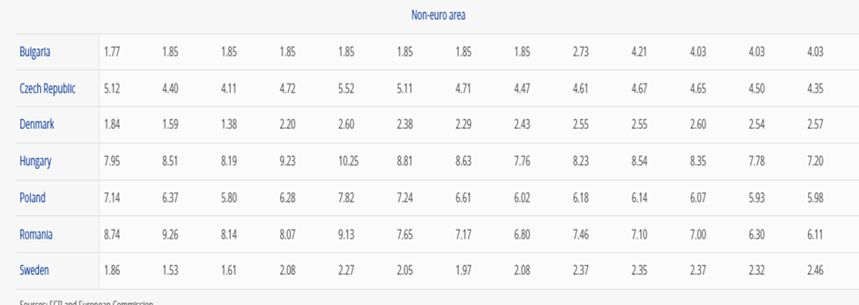 Putem să mai adăugăm aici și costul la care se împrumută Ungaria pe termen lung, 7,2% pe an în iunie 2023, ceea ce face ca împrumuturile luate de guvernul Orban să fie cele mai scumpe din întreaga Uniune Europeană. E drept că și noi, cu 6,11% pe an nu stăm prea bine, dar cert este că Ungaria ne-a luat locul drept codașa Europei la dobânzi: