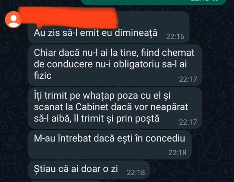 Aceștia mi-au zis să mă duc la doamna psiholog și după aceea să mă deplasez către domnul judecător pentru a îmi cere scuze( lucru pe care eram gata să îl fac pentru că îmi era frică de influența pe care acesta o are asupra instituției din care fac parte, instituție care ar fi trebuit să nu fie influențată de presiunile politice și de presiunile magistraților, lucru care m-a șocat și m-a lăsat cu un dezgust total). După discuțiile purtate cu doamna psiholog, de altfel, singura care a fost dispusă să asculte și punctul meu de vedere( de reținut că si aceasta a fost probabil o forma de intimidare a mea, pentru a îmi arăta ca aceasta este o metoda pe care domnul Director General si doamna Director General Adjunct o pot folosi pentru a îmi face rău), m-am deplasat către Înalta Curte de Casație si Justiție, sens în care i-am dat mesaj domnului judecător în momentul în care am plecat de la Direcția Generală Anticorupție, spunându-i că ajung în 30 minute, și încă un mesaj în momentul în care am ajuns. Am așteptat în fața Înaltei Curți de Casație si Justiție aproximativ o oră, fără să primesc vreun mesaj de la domnul judecător ( aceasta fiind dispoziția dată de domnul Director General Liviu Vasilescu, să aștept acolo oricât ar fi necesar), iar la un moment dat primesc un apel telefonic de la doamna Director General Adjunct, Manuela Popescu care îmi comunică că domnul judecător Nicolescu Alin Sorin este la sediul Direcției Generale Anticorupție si că pot pleca spre casă, lucru pe care l-am și făcut. La un moment dat, la ora 15:08, respectiv 15:09 primesc două mesaje pe WhatsApp din partea domnului judecător Nicolescu Alin Sorin, mesaje care spun următoarele lucruri ” Sper să înțelegi ceva din ecuația asta pt ca ti a trecut un glont pe la ureche…” respectiv „..si atentie la steroizi ca o aa ti prajeasca creierul”.