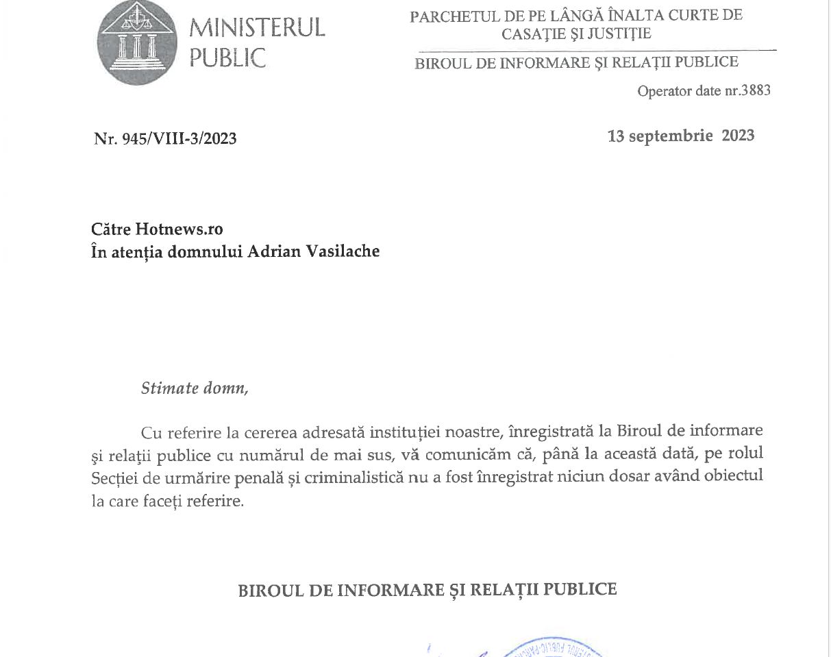Parchetul General a comunicat miercuri, 13 septembrie, în urma unei solicitări făcute cu o zi în urmă de HotNews.ro pe tema neregulilor din programul Casa Verde că pe rolul Secției de urmărire penală și criminalistică nu a fost înregistrat niciun dosar având obiectul la care se face referire.