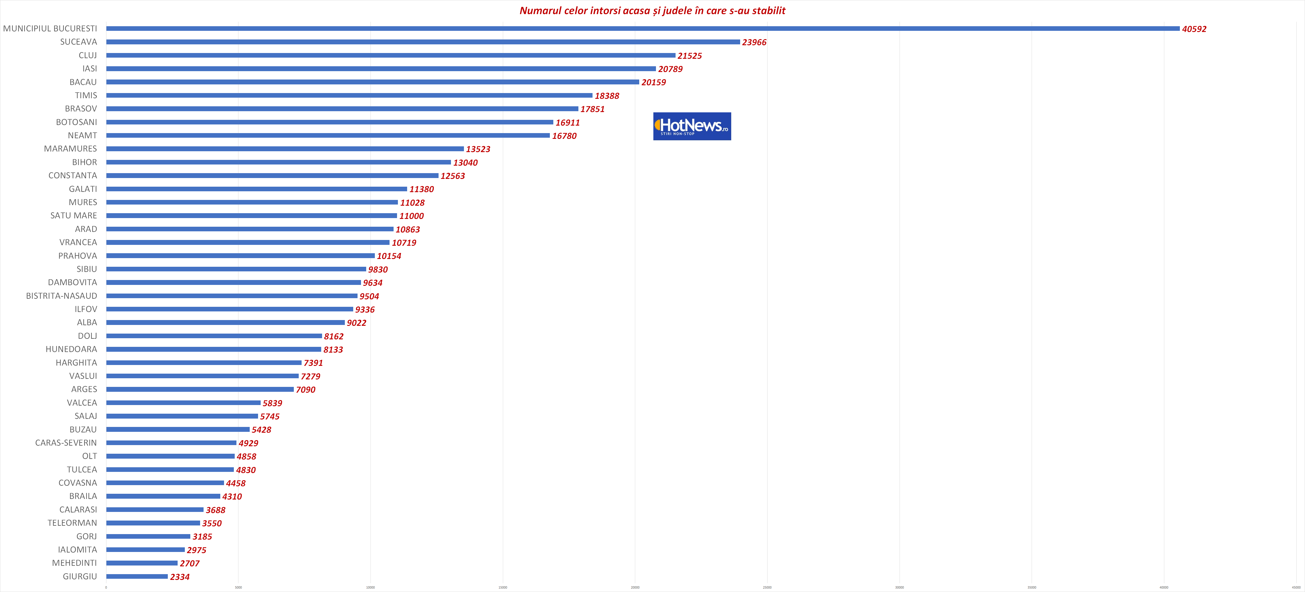Cât privește județele în care cei veniți și-au declarat reședința, cei mai mulți s-au stabilit în București, urmați de Suceava, Cluj și Iași.