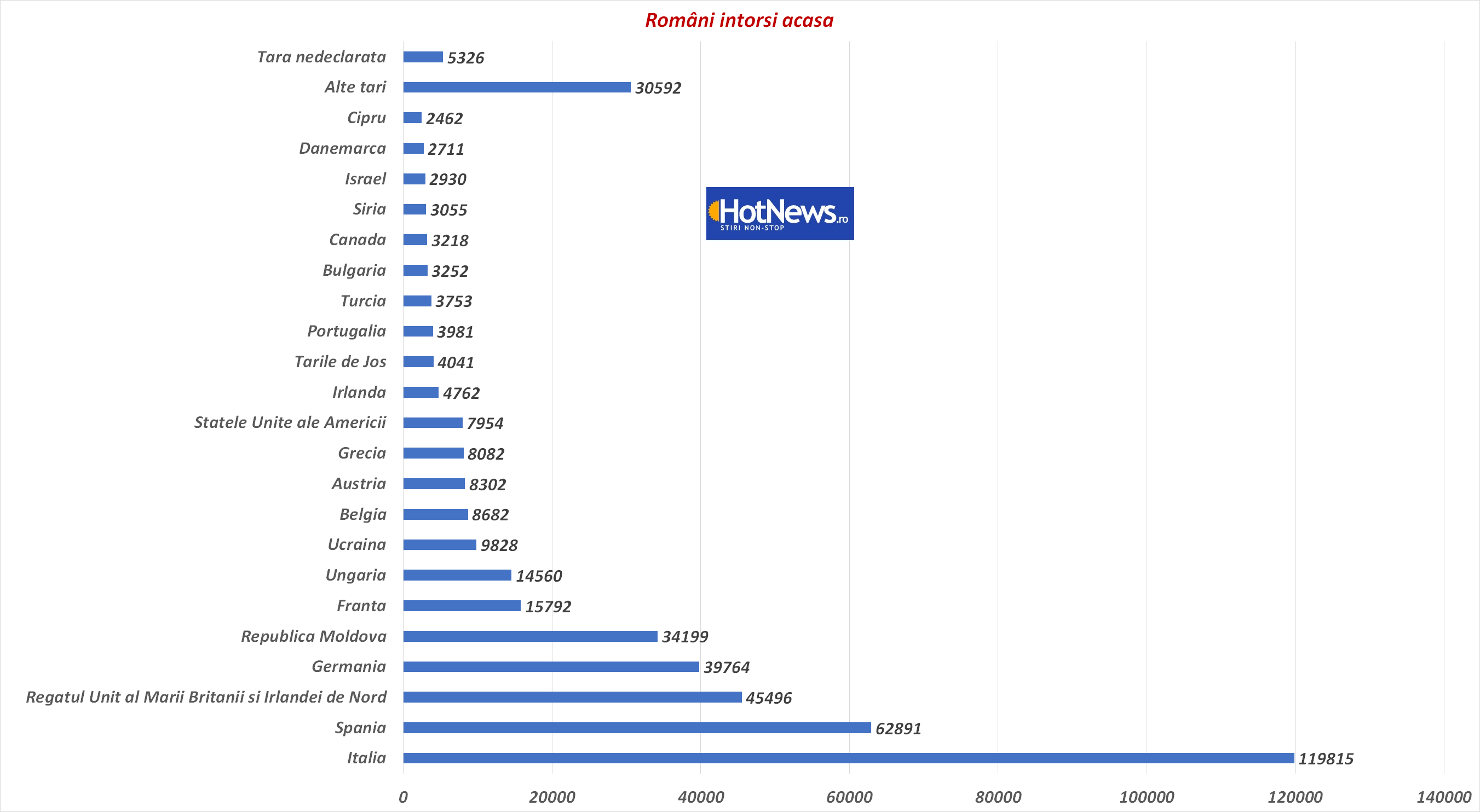 Cei mai mulți au venit din Italia, Spania și UK, potrivit datelor INS, dar avem și români veniți din Danemarca, Cipru, Siria sau Israel. Lista o aveți mai jos: