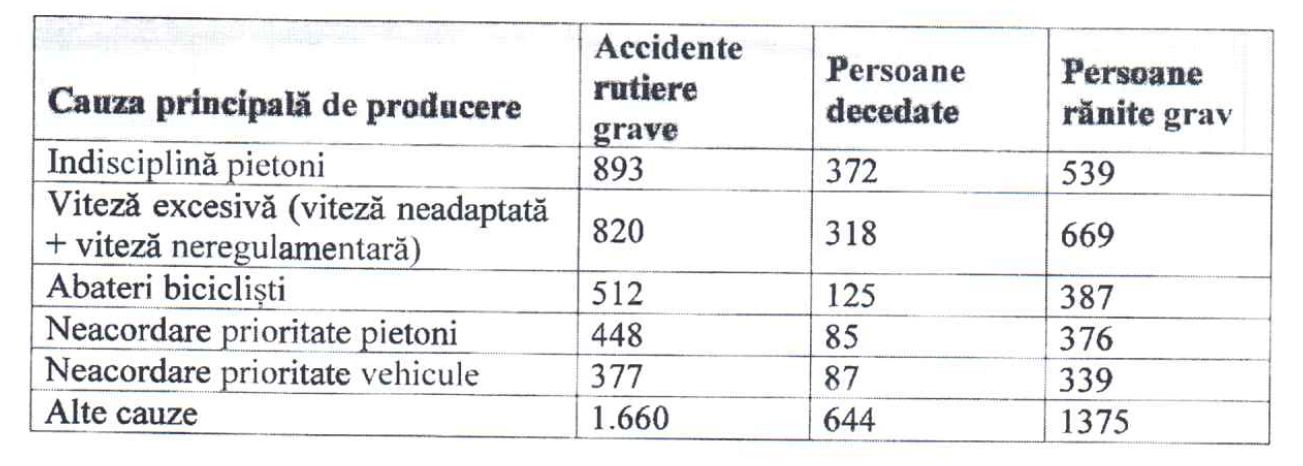 - 3. indisciplina conducătorilor de biciclete: 402 accidente grave, soldate cu decesul a 88 de persoane, rănirea grava a 319 persoane și rănirea uşoară a altor 10,