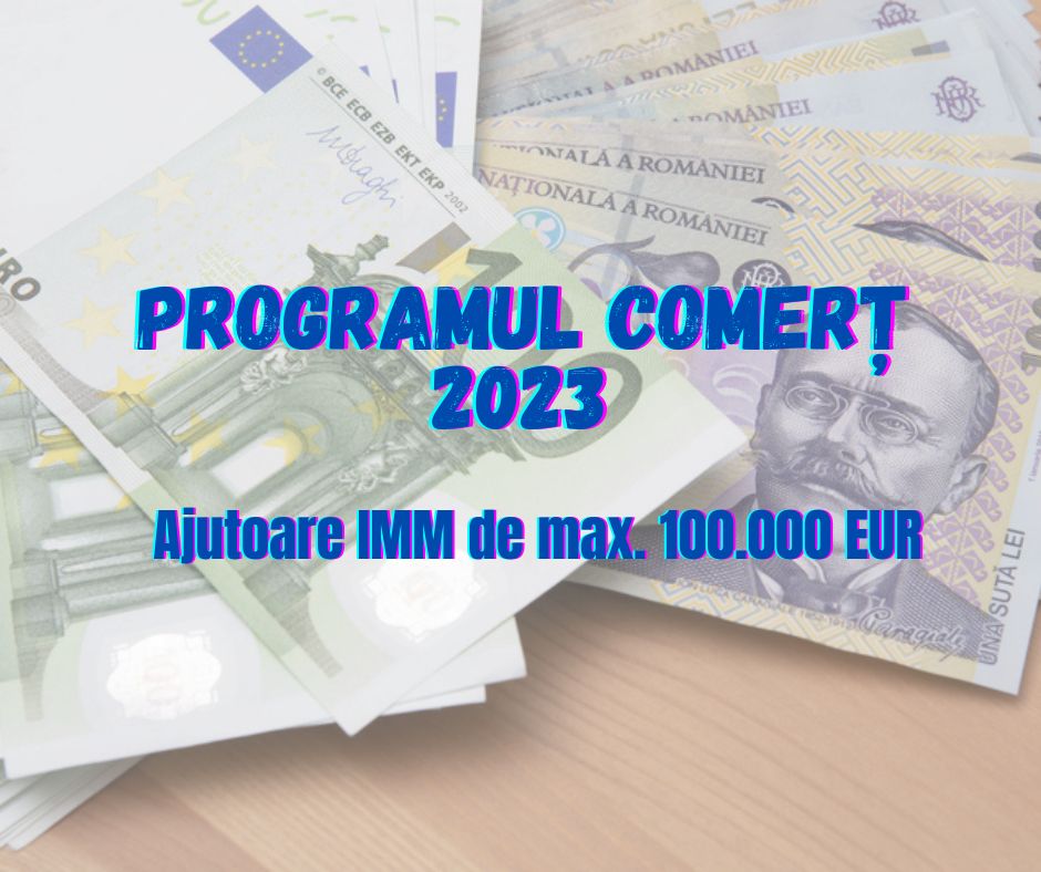Ministerul Economiei a publicat, vineri, 27 octombrie 2023, în Monitorul Oficial, Procedura oficială, cu lista domeniilor CAEN eligibile și anexele relevante, pentru Programul de finanțare Comerț 2023, prin care firmele românești pot obține de la stat ajutoare de minimis de maximum 500.000 de lei (100.000 euro) fiecare.