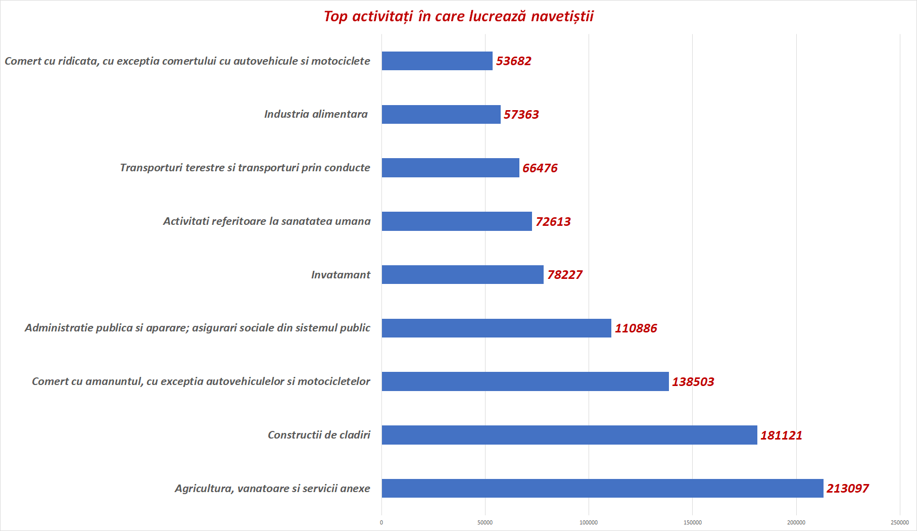 Agricultura, construcțiile și comerțul cu amănuntul sunt principalele ocupații ale celor care au optat să facă naveta. Lista completă o aveți mai jos, sursa datelor fiind Institutul Național de Statistică.