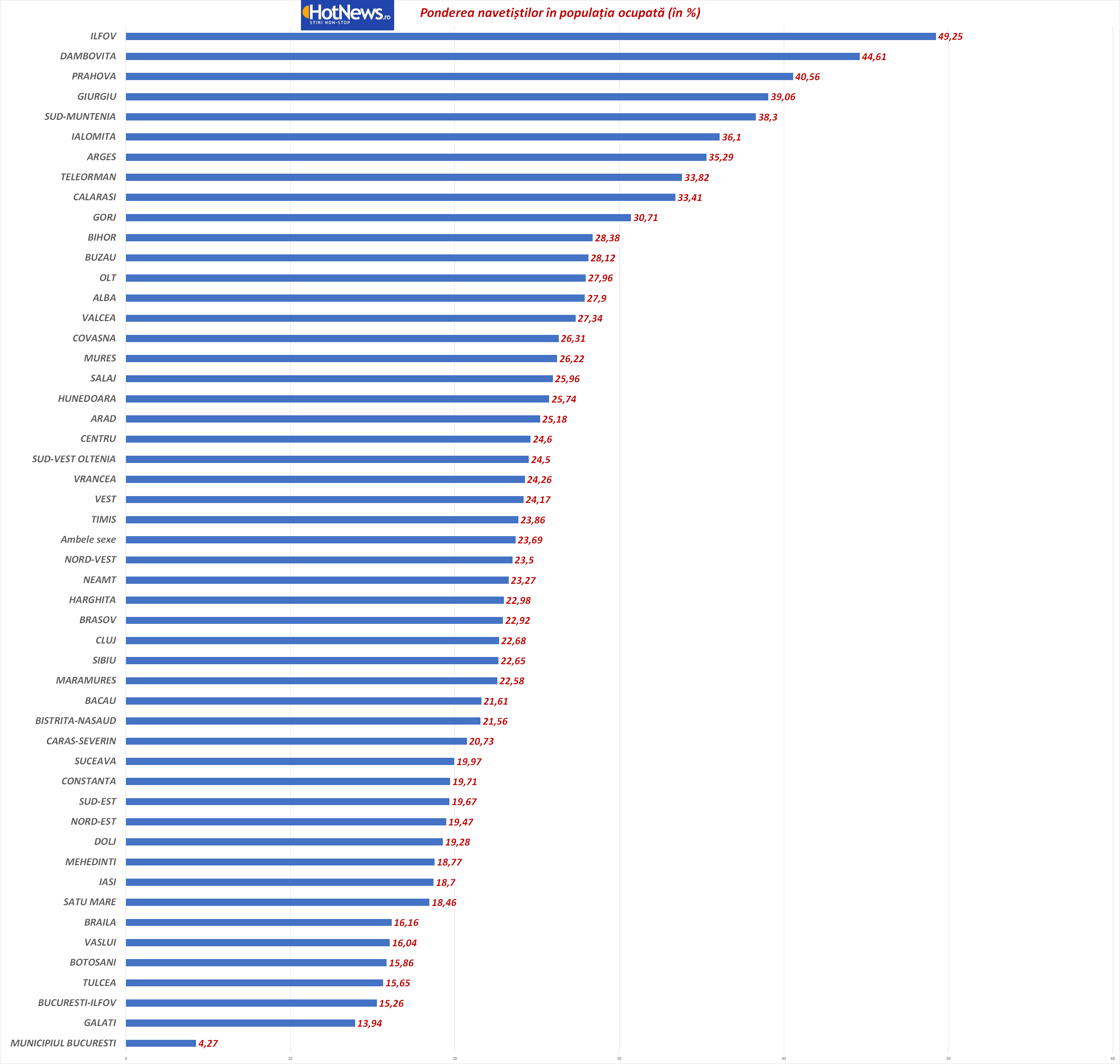 În Ilfov, navetiștii reprezintă aproape 50% din totalul lucrătorilor, cel mai probabil aceștia venind la muncă în Capitală. Urmează județul Dâmbovița, unde navetiștii reprezintă peste 44% din populația ocupată, potrivit Statistivii. Giurgiu și Ialomița sunt următoarele „bazine” de navetiști.