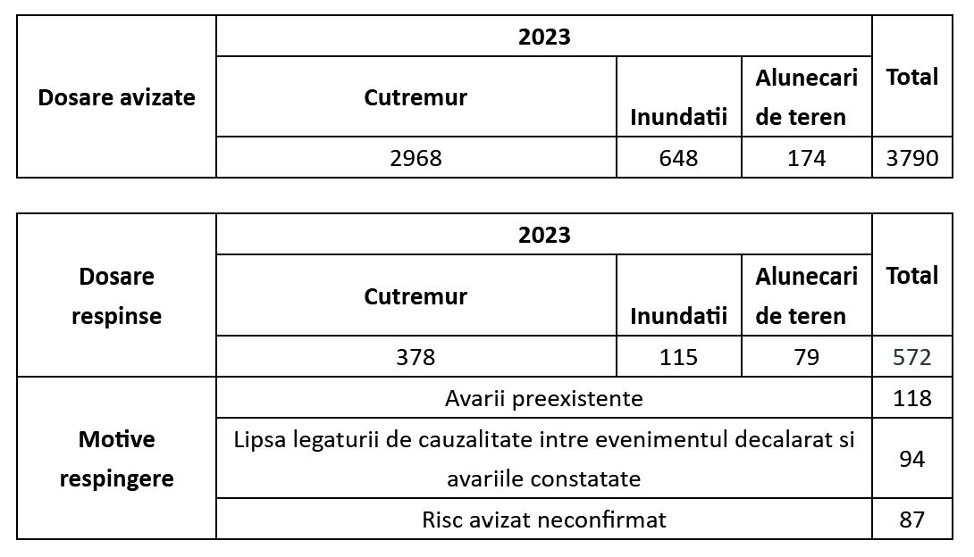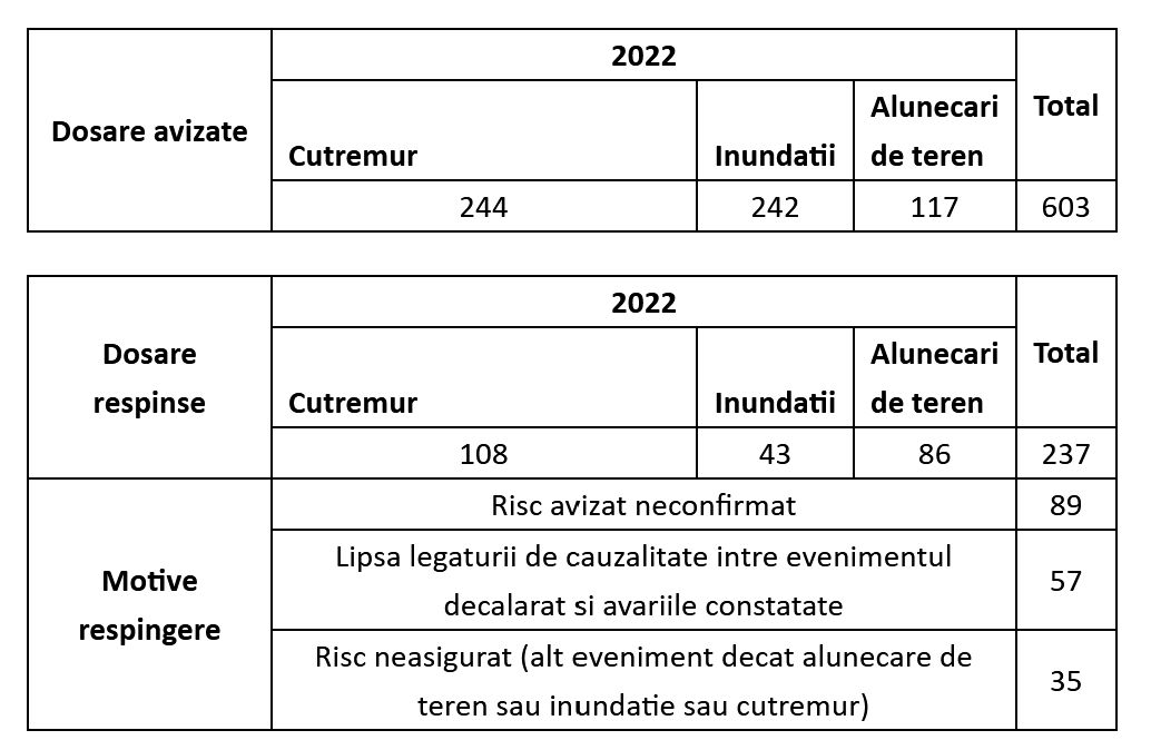 Spre comparație, în 2022, au fost respinse de la plata bdespăgubirilor 237 de dosare dintr-un total de 607 dosare avizate.