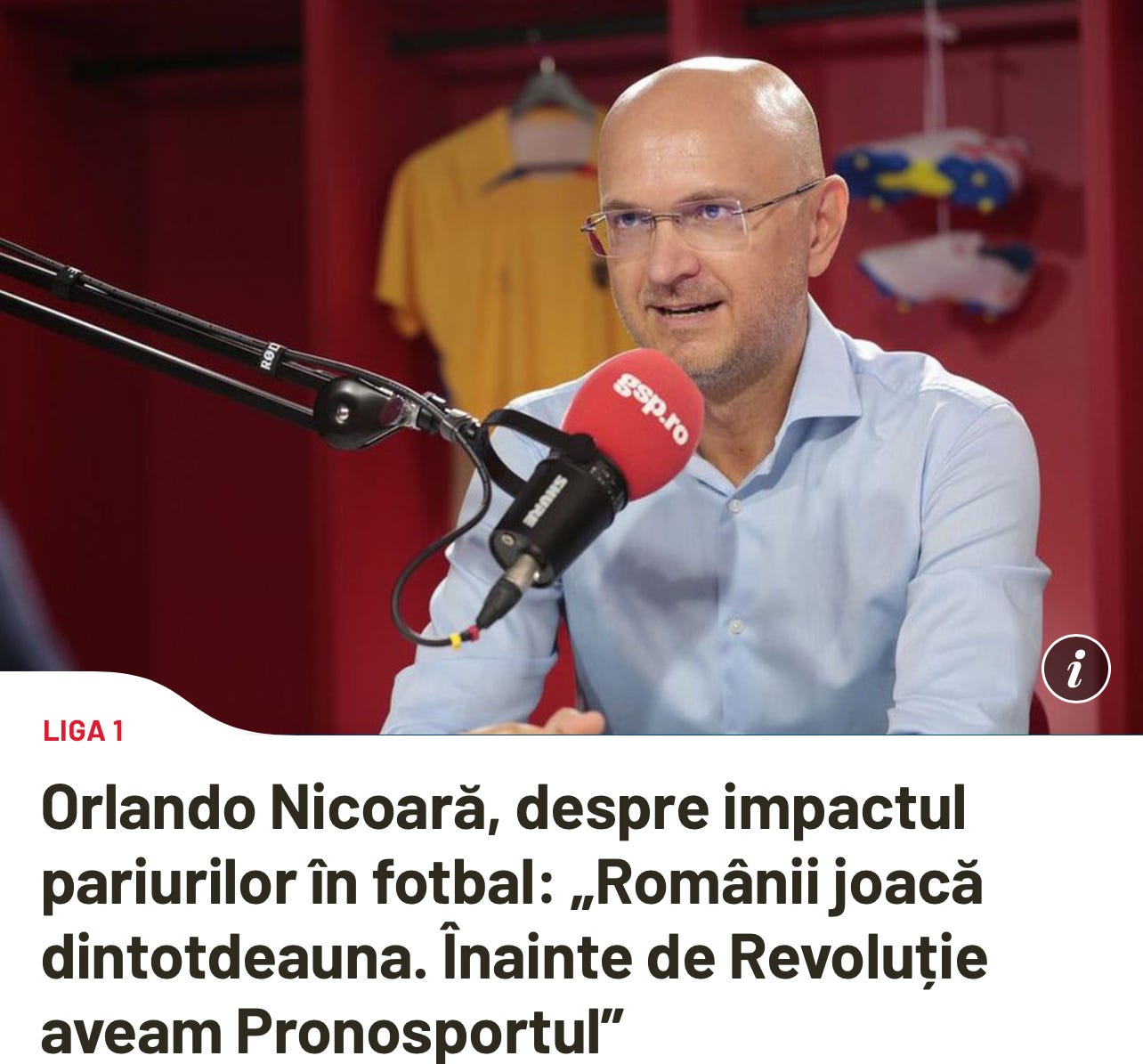Dar bomba e alta. Ieri discutam despre incompatibilitatea crasa a lui Orlando Nicoara, asociatul lui Adi Tomsa din firma Ead.ro, care a cumparat drepturile sportive pentru transmisiunile din Liga 1. Spuneam, printre altele, ca Nicoara face un promo desantat acestei industrii a pariurilor.