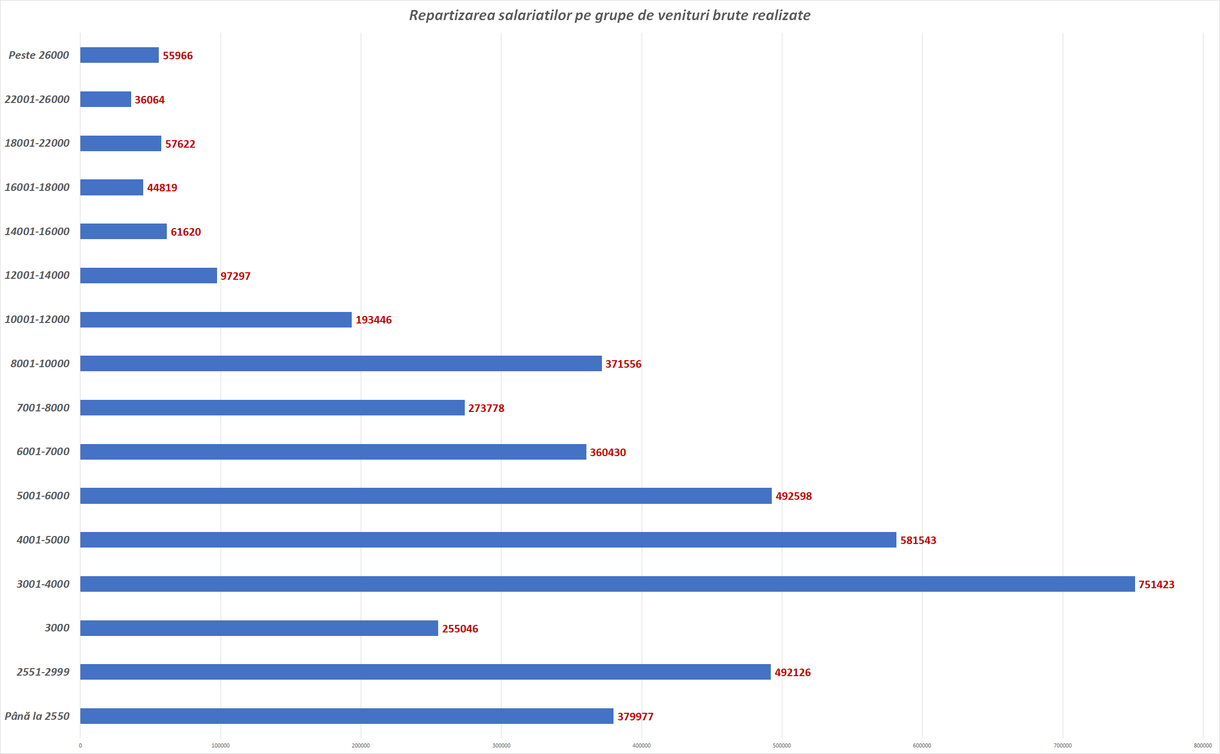 O pătrime din salariaţi au venituri brute sub 3001 lei (27,7% dintre salariaţii bărbaţi, respectiv 22,0% dintre salariaţii femei), arată Statistica
