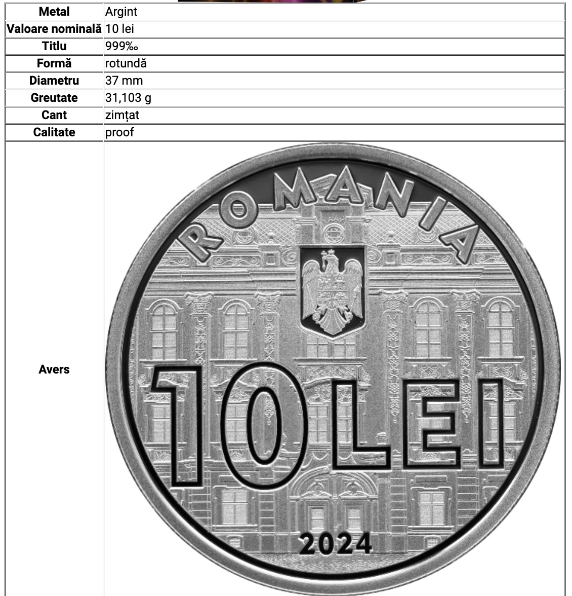 Preţul de vânzare pentru moneda din argint este 460,00 lei, exclusiv TVA, inclusiv certificatul de autenticitate.