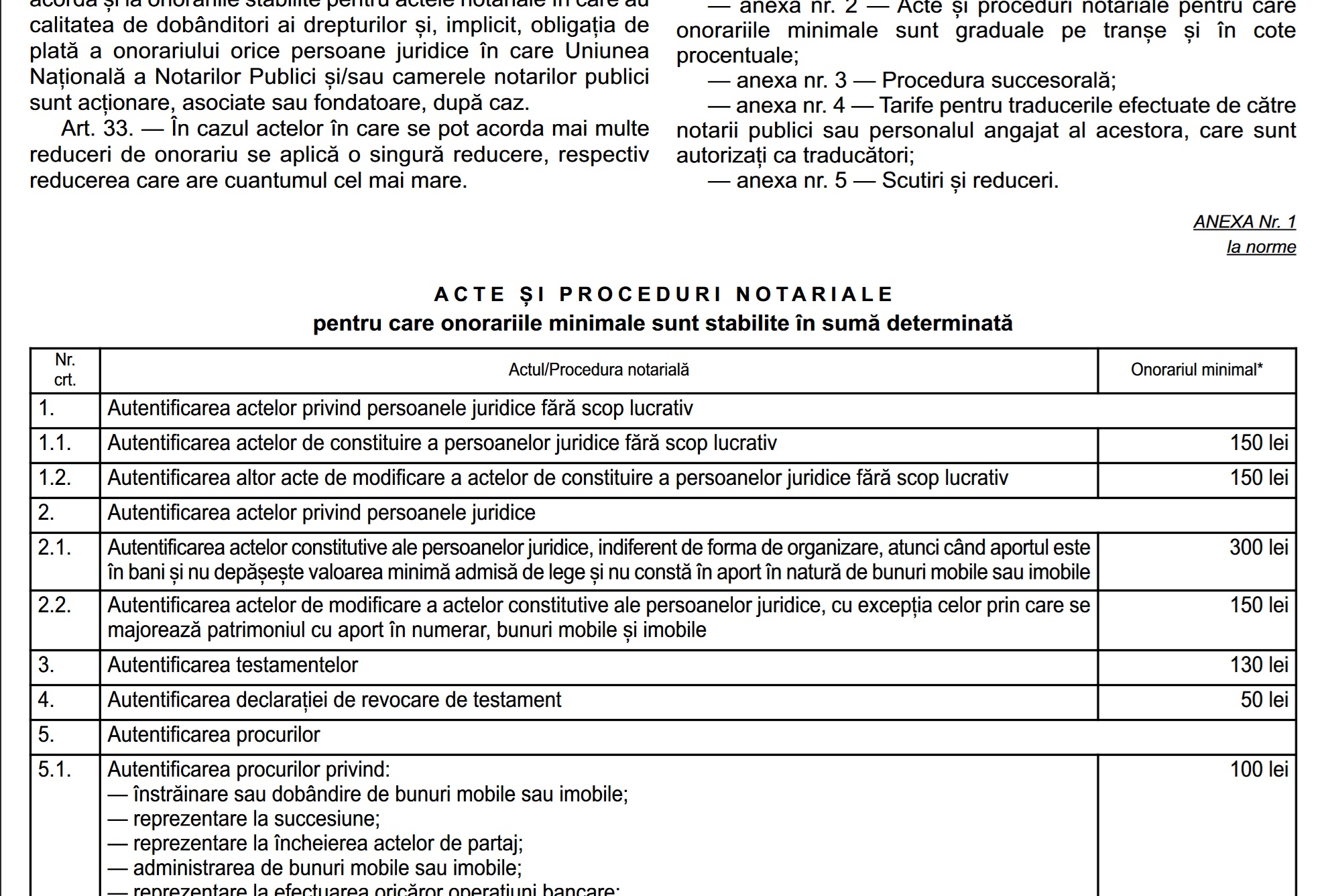 Imobiliare: Cresc tarifele de onorarii minimale notariale. Ordinul 177/C/2024, în Monitorul Oficial