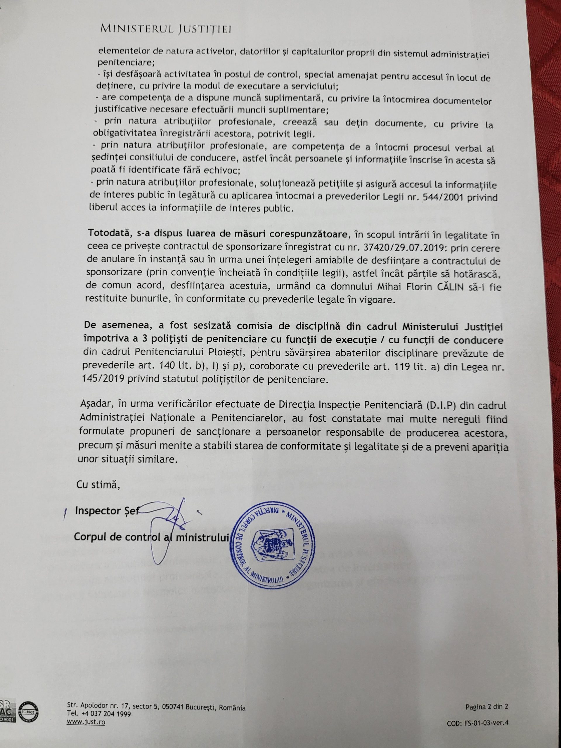 Comisarul șef de poliție penitenciară Valentin Matei nu este la prima abatere de acest gen si beneficiaza de protectia unor ofiteri din cadrul IPJ Prahova, ofiteri corupti care protejeaza aceasta grupare de criminalitate economico-financiara organizata din care face parte si acest „zeus”. Mai mult, el s-a cercetat singur si s-a scos „basma curata”, in opina sa!
