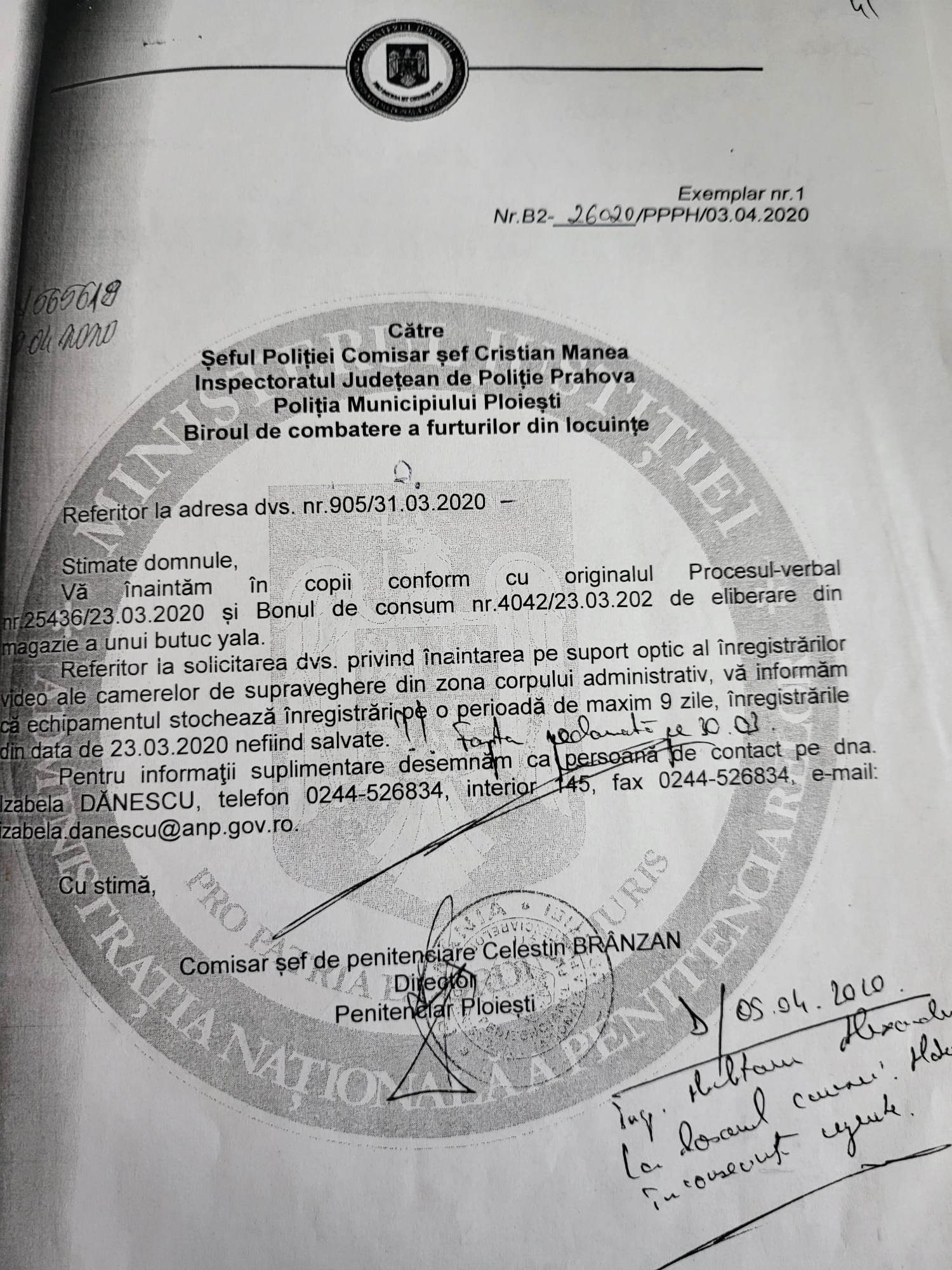 Un birou din cadrul penitenciarului a fost spart, așa că ziua de 8 Martie a fost dedicată cercetărilor penale, o echipa de la criminalistică a fost solicitată și s-a deplasat in interiorul Penitenciarului Ploiești pentru a desfășura activități specifice. Au fost realizate planșe foto, au fost prelevate amprente, se vizualizează inregistrările video și se așteaptă un rezultat.