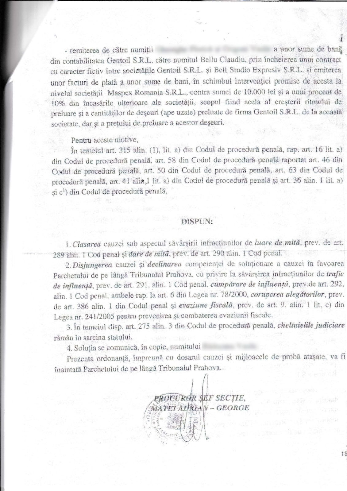 Si dacă tot vorbim despre corectitudine, spaga a fost obținută de la mahărul „mafiei deseurilor” din Prahova, cel pe care Stavri îl calcă în picioare de ceva timp încoace, deoarece a refuzat sa ii mai dea spaga la santaje!