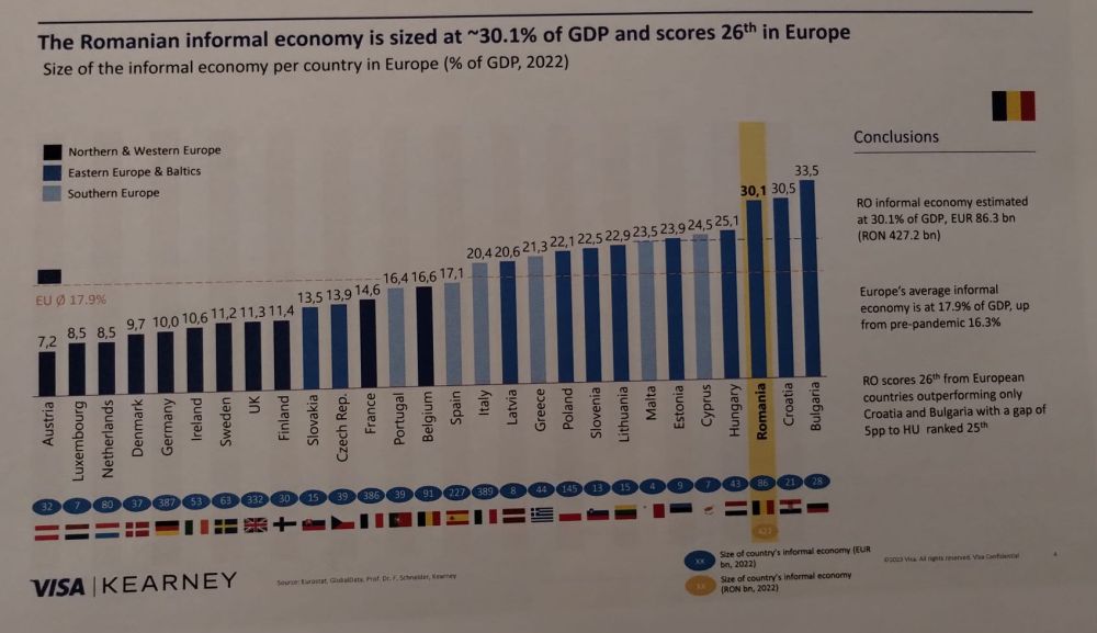 Economia subterană a României este estimată la 30,1% din PIB-ul anului 2022, respectiv 86,3 miliarde de euro, pe locul 3 în Europa, fiind depășită doar de Croația și Bulgaria.