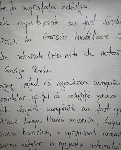 - actul de vanzare-cumparare nr 74 din data de 10.01.2023, cu scopul de a obtine foloase materiale injuste, ca prezentare ca vor vinde din patrimoniul PFA, apartamentul 3 din strada Sondelor nr 62T, inlocuit ulterior de: