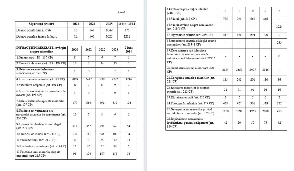 Ca să înțelegem rostul deciziei de a ”scoate din producție” cca 200 polițiști, am cerut IGPR-ului câteva date, am și primit răspuns. Se pare că ne confruntăm cu unele probleme de analfabetism funcțional la prutătoarea de vorbe de la centru, Olga Menaev, la care vedem deja de mai multă vreme că întâmpină dificultăți în înțelegerea adreselor (solicitărilor) noastre, puncyeaza Vitalie Josanu. De aceea, ne vedem văduviți de posibilitatea corelării și interpretării unor date de interes. Am cerut, de exemplu, numărul total al polițiștilor cu aviz de poliție judiciară și numărul polițiștilor de siguranță școlară care pierd acest aviz, ca urmare a dispoziției din 1 martie 2024. Oricum ar fi, în condițiile crizei de personal, 200 de polițiști nu e un număr de neglijat iar dacă ne raportăm la necesitatea specializării polițiștilor în cauzele cu minori, numărul prezintă deja cu totul alte valențe! Putem vedea măcar din statistica privind infracțiunilor în care sunt implicați minori: