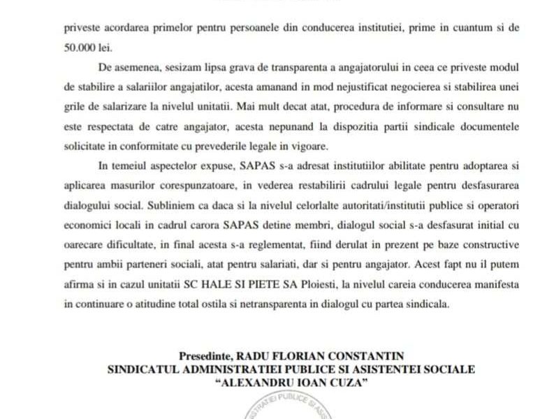 Conflicte Sindicale și Lipsa Transparenței în Administrarea Financiară la SC Hale și Piețe SA Ploiești – Ziarul Incisiv de Prahova