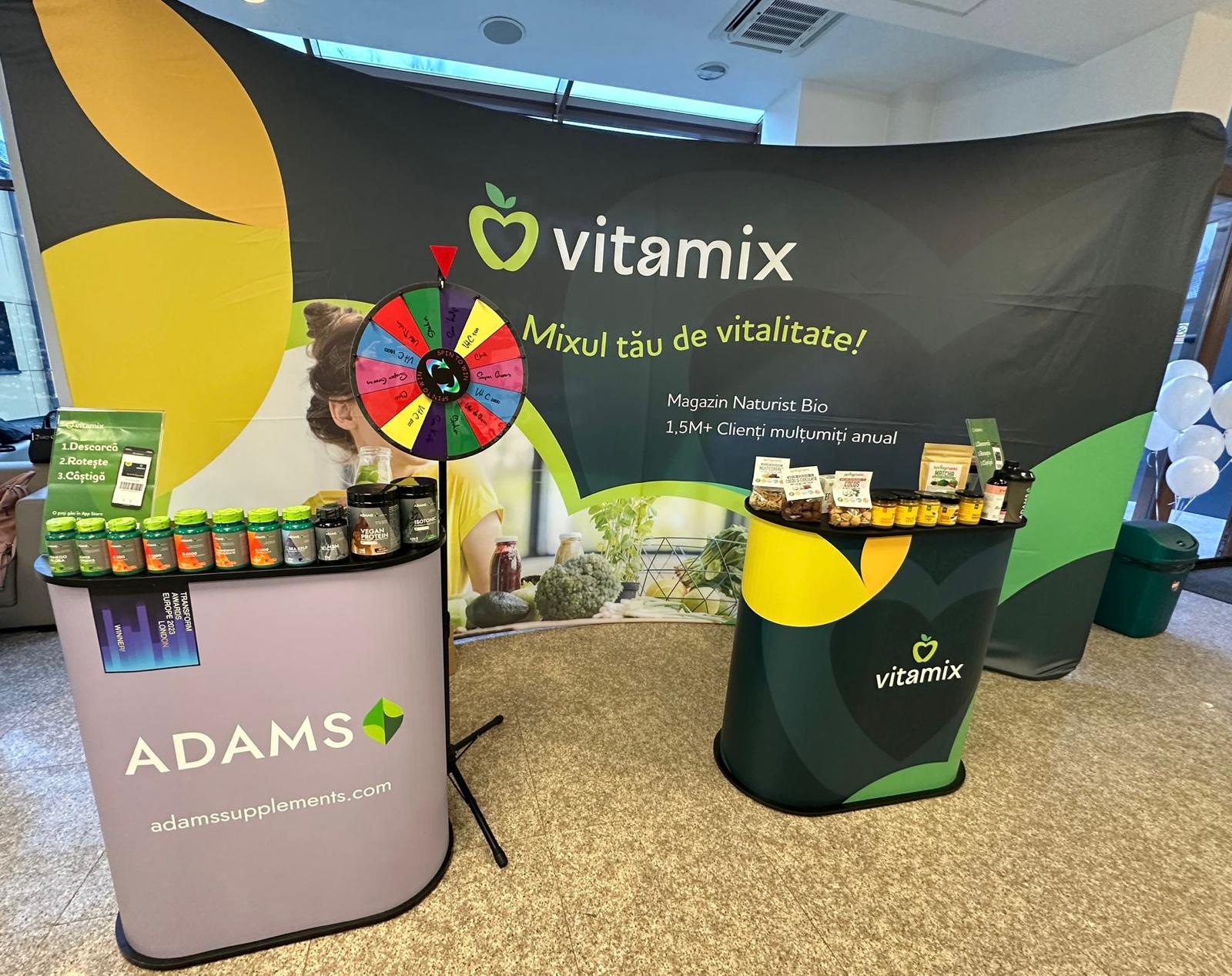 Unul dintre punctele de atracție ale standului este activitatea interactivă „Spin to Win”, care aduce un plus de distracție și recompense pentru participanți. Cei interesați au șansa de a câștiga produse din portofoliul Adams Vision prin simpla descărcare a aplicației Vitamix, o platformă pentru cardul de fidelitate și un mod de a transmite informații despre noile promoții utilizatorilor.