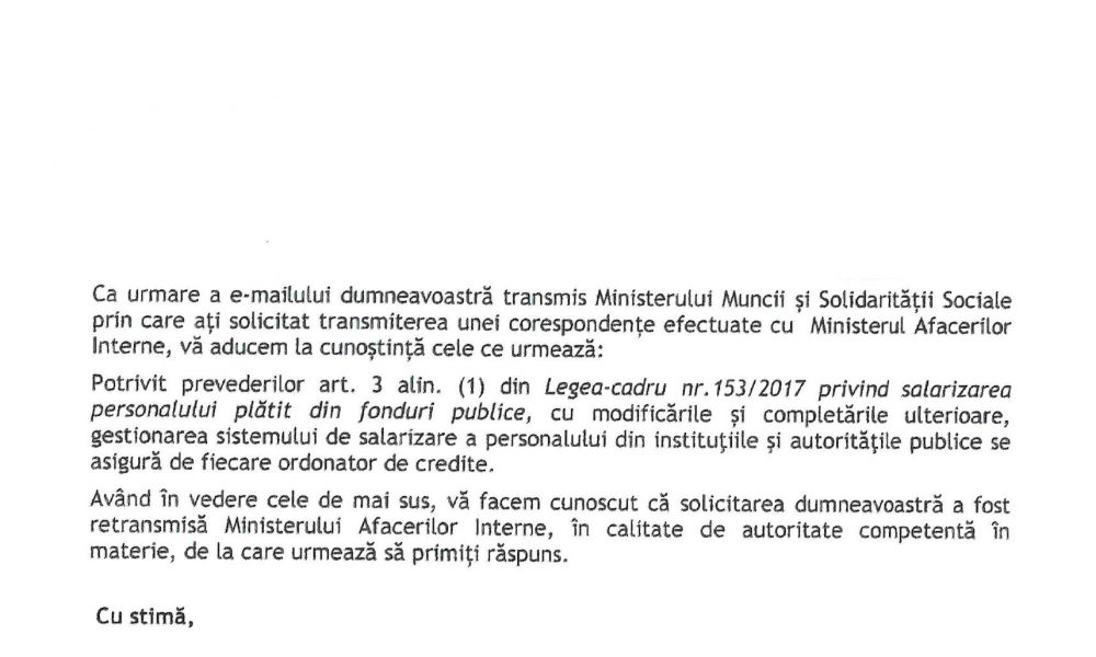 Referitor la subiectul excelentei, asa cum am banuit, Ministerul Muncii a fost sensibilizat sa tergiverseze comunicarea informatiilor solicitate prin petitiile politistilor, precizeaza Emil Pascut de la...