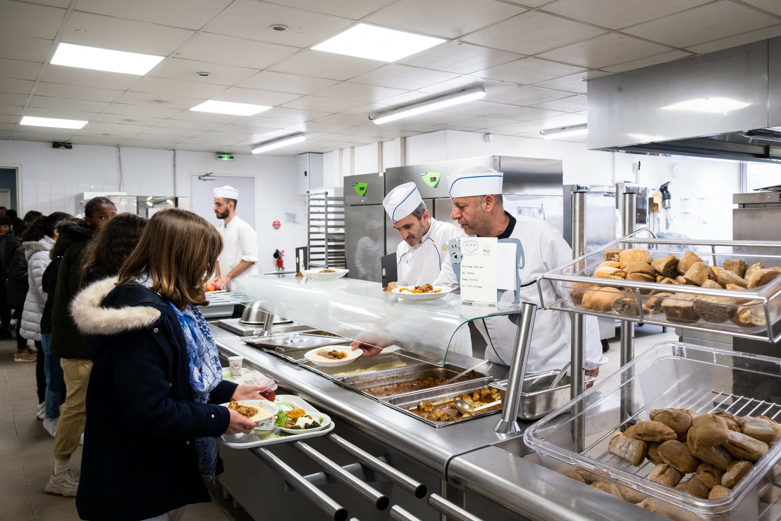 France, Toulouse, 21-04-2022. In the canteen of a Toulouse college, an agrilocal day with the chef who created a menu using only local products. Photograph by...