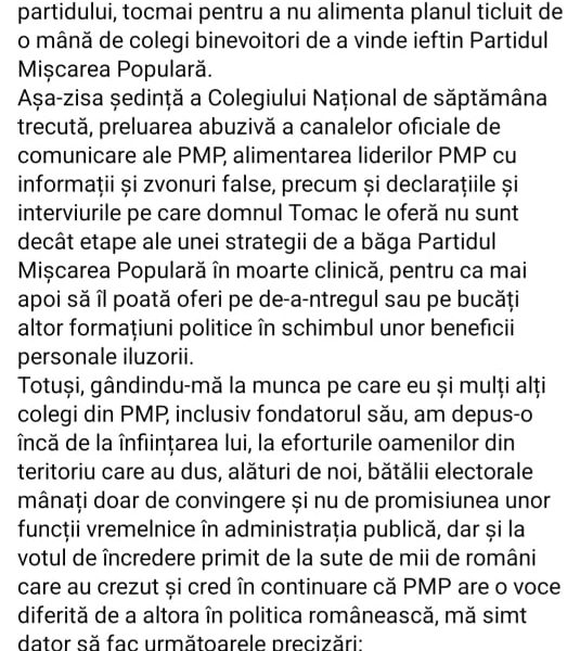 Iliescu Catalin Lucian: „Totul e pe ,liniște’ în PMP Numai cine e ,orb’ politic, gândește că, azi, în PMP este totul roz și data propusă pentru...